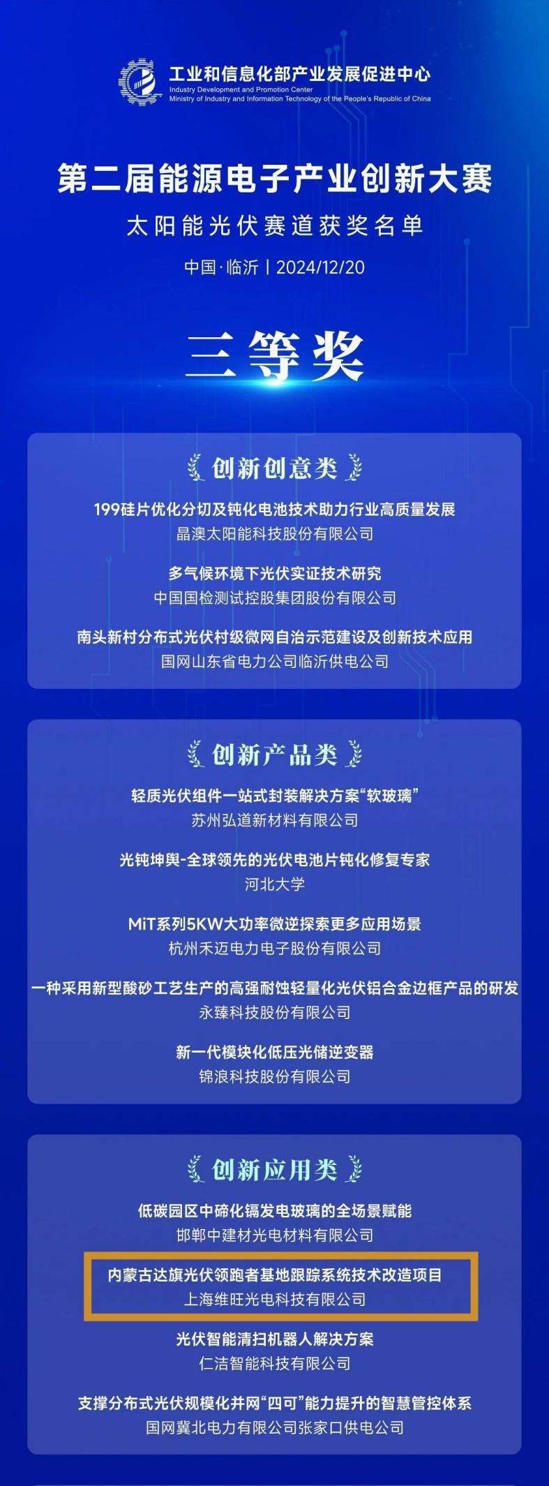 技術賦能 榮譽升級|維旺光電榮獲工信部第二屆能源電子產業創新大賽三等獎