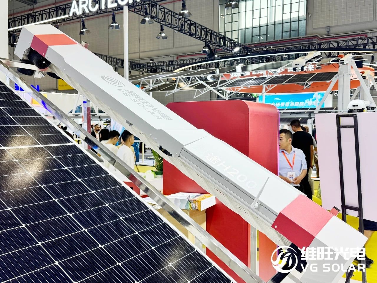 其中,煥新升級的多場景綜合解決方案憑借對多樣化應用場景的高度適配能力,成為展會現場關注的焦點。該方案深度融合維旺光電自主研發的“拓疆”系列跟蹤系統、“坦途H200”清掃機器人及“全御空”巡檢機器人,通過智能協同與數據互通,構建起覆蓋光伏電站全生命周期的智能化管理體系,實現從發電效率優化到運維管理升級的全流程閉環控制,驅動整體系統效能顯著提升。