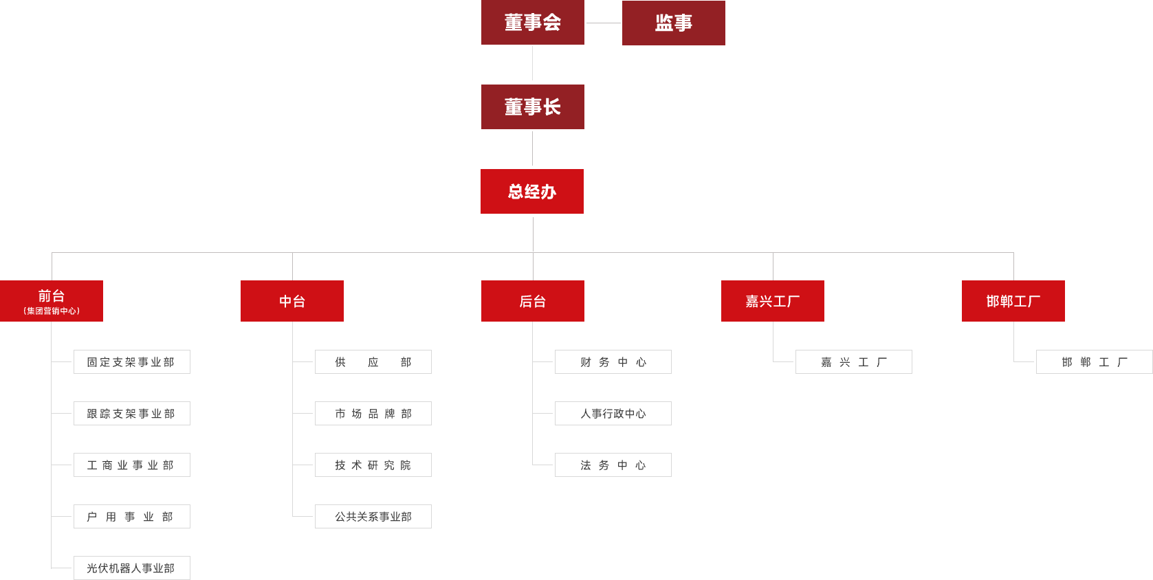公司管理團隊在光伏行業擁有豐富經驗,對太陽能光伏行業的發展趨勢有深刻的專業洞察力,能夠敏銳捕捉行業變化。 具備科學的戰略決策和高效的執行能力,始終將客戶放在首位,通過在科技研發、產品推廣、工藝改進、精益生產和成本控制等方面的持續提升,不斷增強核心競爭力。 多年的實踐積累使我們逐步建立起了現代科學管理體系,涵蓋新產品開發、原材料采購、生產運營、質量控制、成本管理、財務管理、市場營銷和品牌建設等方面。
