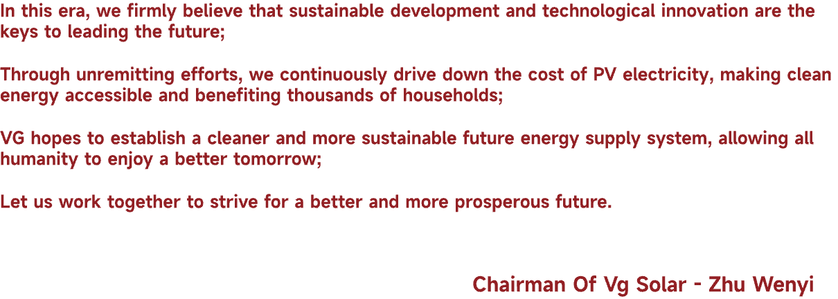 Corporate Vision: To build China's leading intelligent PV brand, become a green leaf in the new energy industry, and contribute VG Solar's strength to the dual-carbon goals.